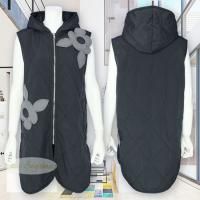 大きなペタ花飾りが印象的な、フード付きキルティングベストです。