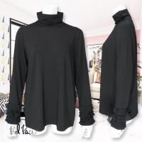 袖口のチュールリボン、フリルがアクセントになった、ハイネックプルオーバーです。