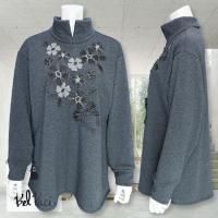 ビジューをアクセントに使ったお花のモチーフ、ピンタックが印象的なプルオーバーです。