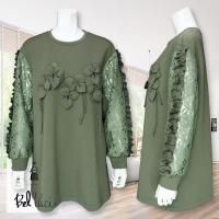 立体的なお花のモチーフ、フリルライン、レース袖が特徴的なチュニックです。