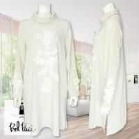 立体的なお花のモチーフ、スズランレース飾りが可愛い、ゆったりシルエットのミニハイネックチュニックです。