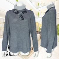 表情豊かなお花のモチーフがアクセントになった、ハイネックセーターです。