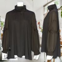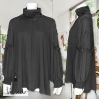 お花のモチーフ、軽やかなシフォン袖が特徴的な、ハイネックチュニックです。
