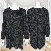 立体的なお花のモチーフがアクセントになったフロッキープリントのチュニックです。