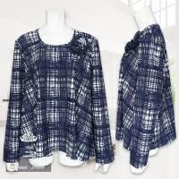 ラフな格子柄が印象的な、長袖Tシャツです。立体的なお花のモチーフがアクセントになっています。