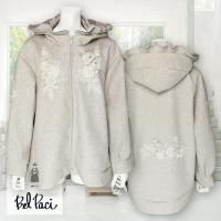 立体的なお花のモチーフがアクセントになった、フード付きブルゾンです。ボディ部分は生地が2重になっています。