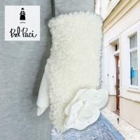 大きなお花のモチーフ、フワフワボアが特徴的な手袋です。
