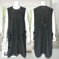 立体的なお花のモチーフ、フリルの縁取りが可愛いロングベストです。ボトムのギャザーがアクセントになっています。