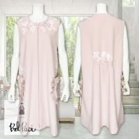 ベルパーチらしいお花のモチーフ、レース、ジョーゼット段フリルが可愛いロングカーディガンです。毛足の長いボア衿がアクセントになっています。