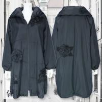 チュールネットの軽やかなお花のモチーフ、リボン飾りが可愛い、フード付きジップアップジャケットです。