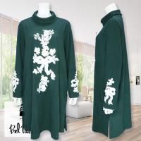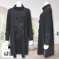 立体的なお花のモチーフ、スズランレース飾りが可愛い、ゆったりシルエットのミニハイネックチュニックです。