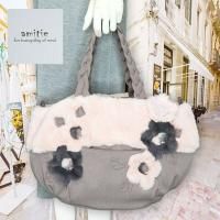 モコモコとしたお花のモチーフ、フワフワのフェイクファー使いが可愛いバックです。