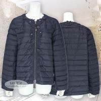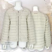ビジューをアクセントに使った、立体花、レース花飾りが綺麗な、ライトウェイトのダウンジャケットです。