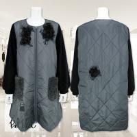 立体的なお花のモチーフ、フワフワボアのポケットが可愛いコートです。ニットとキルティングのコンビデザインです。