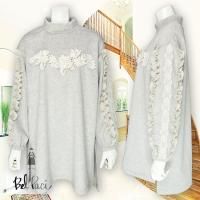 立体的なお花のモチーフ、フリルライン、レース袖が特徴的なチュニックです。
