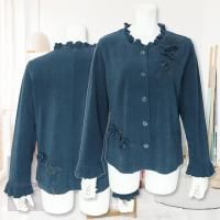 立体的なお花のモチーフ、ネックラインのメローモチーフが可愛いロングカーディガンです。