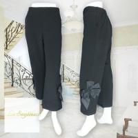 前身頃がキルト、後ろ身頃がストレッチ素材のコンビモチーフパンツです。サイドの大きなお花飾りがアクセントになっています。