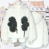 大きなお花のモチーフが印象的な、中綿入りフード付きジャケットです。