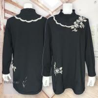 立体的なお花のモチーフ、レースオーナメントがアクセントになった、ハイネックチュニックです。