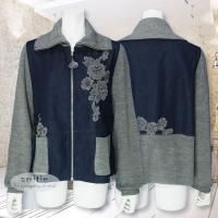 繊細なレース花飾りがアクセントになった、デニム&ニットのジャケットです。