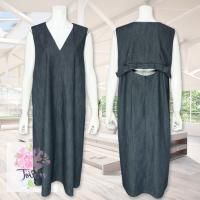 バックリボン、ポイント的に背中を開けたデザインが特徴的な、デニムジャンパースカートです。