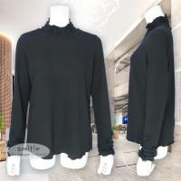 立体的なお花のモチーフ、レース花、フリルラインが印象的な、ハイネックプルオーバーです。