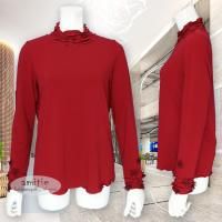 クルクルとカールしたメローモチーフ、小花飾りが可愛い、ミニハイネックの長袖Tシャツです。